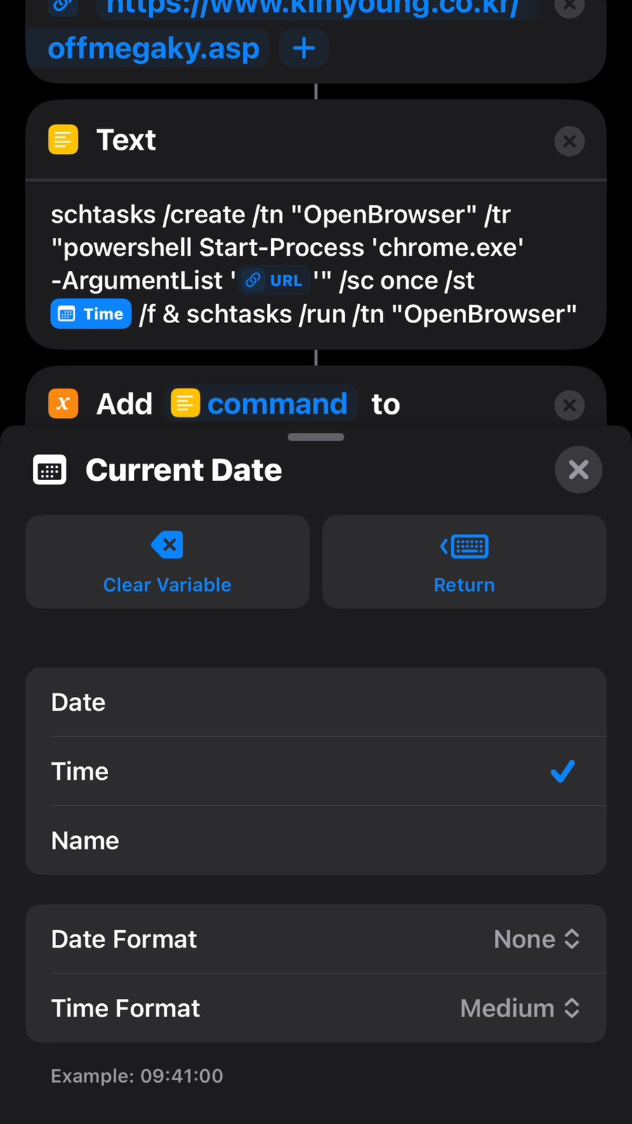 schtasks /create /tn "OpenBrowser" /tr "powershell Start-Process 'chrome.exe' -ArgumentList 'https://www.naver.com'" /sc /once /st 00:00:00 /f & schtasks /run /tn "OpenBrowser"