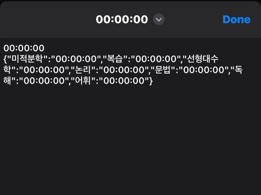 ์ด ๊ณต๋ถ์๊ฐ๊ณผ, ๊ณผ๋ชฉ๋ณ ๊ณต๋ถ์๊ฐ์ด Jsonํ์์ผ๋ก ์ ์ถ๋ ฅ ๋ ๊ฒ์ ๋ณผ ์ ์๋ค.